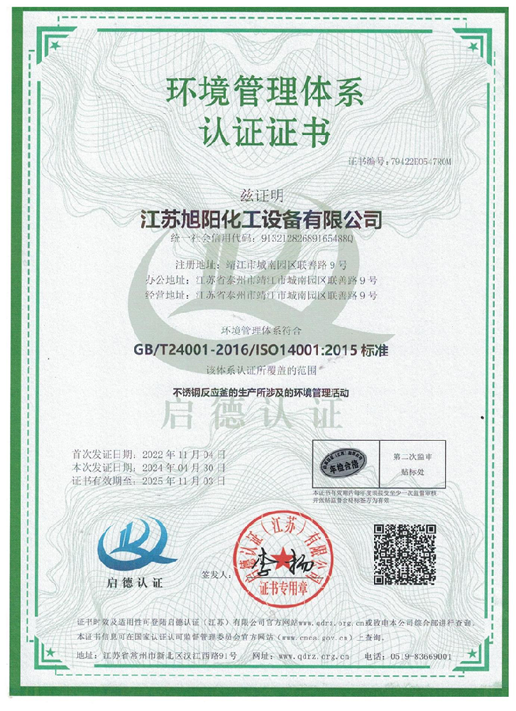 江蘇旭陽化工設(shè)備有限公司專業(yè)從事各類化工、環(huán)保、制藥、發(fā)酵、食品、新材料、鋰業(yè)等項(xiàng)目設(shè)計(jì)、制造及壓力容器的生產(chǎn)制造,是一家集研發(fā)、生產(chǎn)和進(jìn)出口貿(mào)易于一體的高科技企業(yè)。